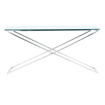 This Vision console table has a durable, toughened glass surface on top of a sleek iron and nickel frame. Read more